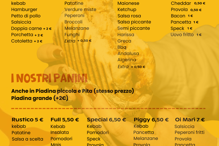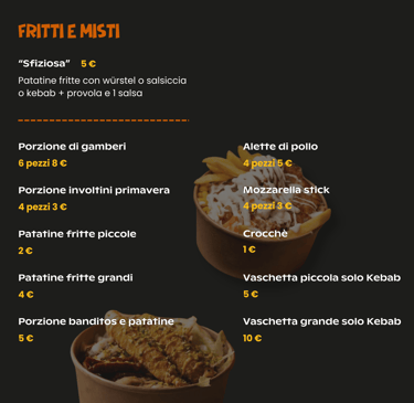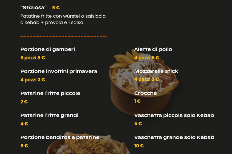 Patatine fritte con würstel o salsiccia o kebab + provola e 1 salsa